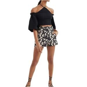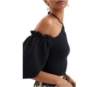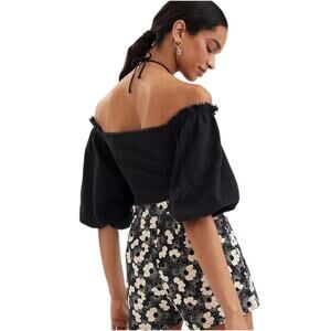 Anthropologie Frida Cropped Top Womens XL Black Off-Shoulder Halter Minimalist