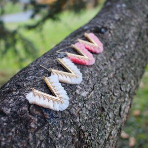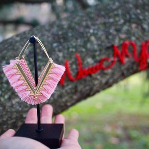 New Anthropologie Pink Gold Fringe Triangle Earrings