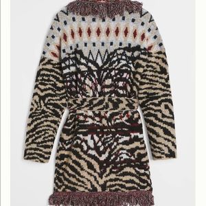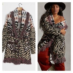 Brand new Anthropologie Fringed Cardigan. We can’t keep their paws off this cozy fringed layer. An assortment of animal prints.