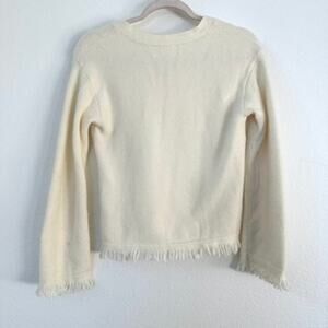 Anthropologie Fringed Cream V-Neck Sweater, Size XXS