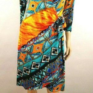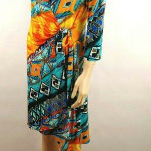Anthropologie From The Heart Deco Print Wrap Front Dress Size S Fits Large