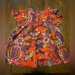 Anthropologie Funky Retro Paisley 70s Cap Sleeve Floral Blouse Size Small C3