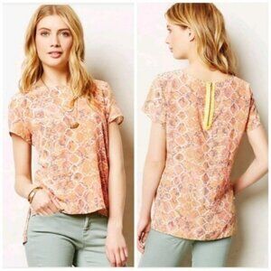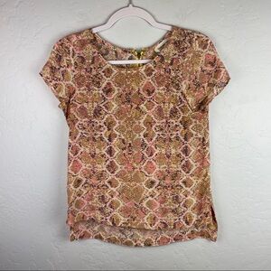 Anthropologie Fynn and Rose Tofino Snakeskin Print 100% Silk Short Sleeve Top XS