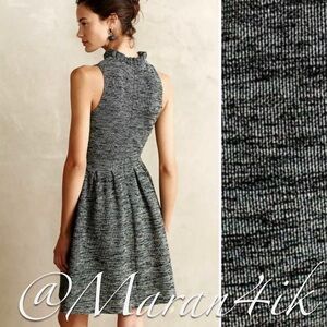 Anthropologie Ganni Pinnacle Textured Tweed Ruffle Neck Mini Dress, L
