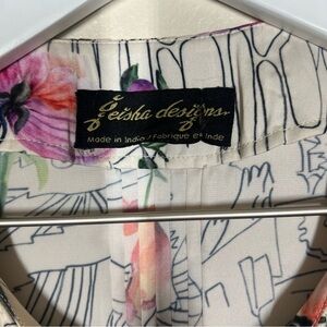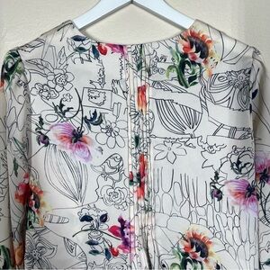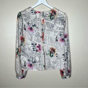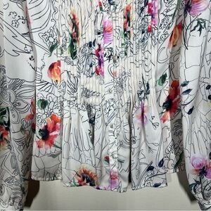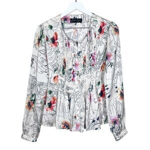 Anthropologie Geisha Barnes Pintucked Ivory Floral Abstract Button Down Shirt