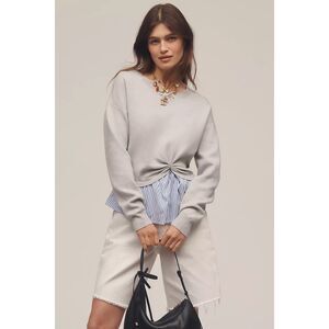 Anthropologie sweater gives the illusion of layered separates. It incorporates a soft knit top with a contrasting, striped woven panel peeking out at the hem. A cinched detail at the waist adds a touch of definition. This versatile piece offers a fresh take on a classic silhouette.