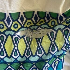 Anthropologie Geometric Abstract Cotton Twin Bed Skirt Boho Decor Green Teal