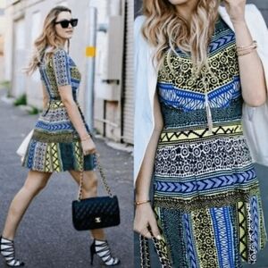 Anthropologie Geometric Patterned Short Sleeve Fit And Flare Mini Dress Artsy