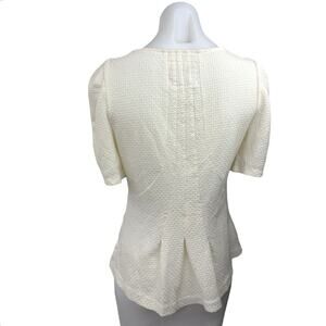 Anthropologie Georgia White Textured Pleated Puff Sleeve Peplum Blouse Top Sz S