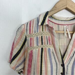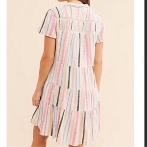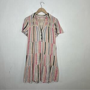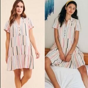 Anthropologie Georgina Tiered Striped Pastel Cotton Shirtdress Size Small