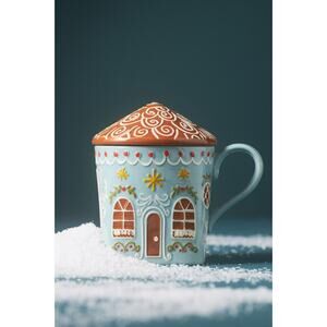 Anthropologie Ginger Stoneware Mug Light Blue New Lidded Gingerbread Cup NWT