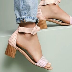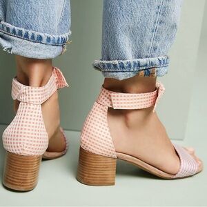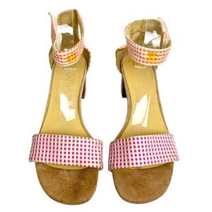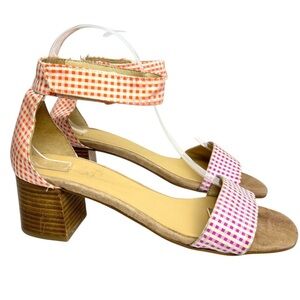 Anthropologie Gingham Ankle Strap Heeled Sandals Size 39 US 8.5 Orange Pink