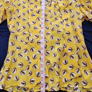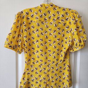 "Lemon Lift Off" silk blouse in owl print.