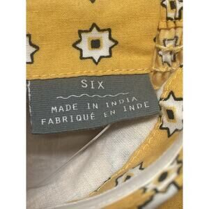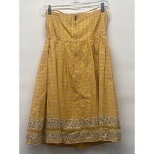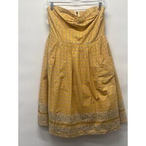 The Anthropologie Girls From Savoy Women's Paisley Bandana Strapless Dress in size 6 is a stylish and versatile piece perfect for various occasions such as weddings, parties, formal events, and business meetings. Made from a blend of spandex and cotton, this dress features a sweetheart neckline, sleeveless design, and a zip closure for easy wear. The paisley pattern in a vibrant yellow color adds a touch of femininity, while the fit & flare style and lined interior provide a comfortable and flattering fit. With its woven fabric and smocked details, this dress is a must-have for the summer and spring seasons.