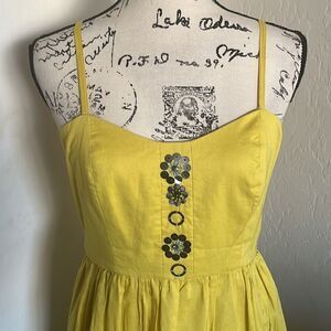 Anthropologie Girls From Savoy Yellow Embellished Dress Feminine Event Party