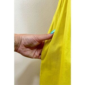 This Anthropologie mini dress in a beautiful yellow and chartreuse color is sure to turn heads. The dress features stunning embroidery and beaded accents, making it the perfect choice for any special occasion. The dress length falls just above the knee, making it a great fit for anyone.