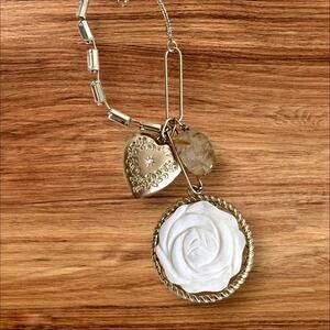 Anthropologie Gladys Pendant Necklace Quartz Mother of Pearl Long