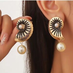 Anthropologie Gold Black Shell Earrings with Pearls