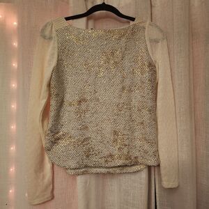 Anthropologie Gold Foil and Cream sweater size extra small.