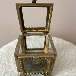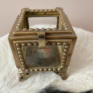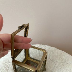 Elegant glass trinket box with gold accents. Perfect for small treasures. Adds a vintage touch to any decor.