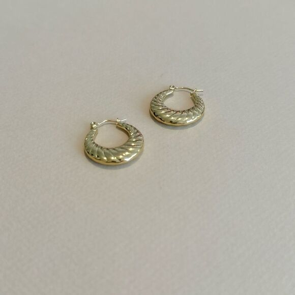 Elegant gold hoop earrings. Twisted design. Perfect for any occasion.