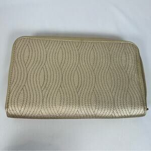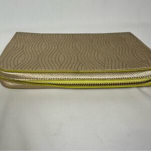 Anthropologie Gold Metallic Clutch Zip Around Closure Planner Wallet 9X6