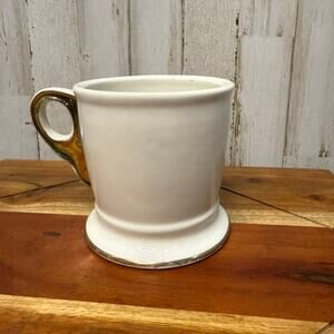 Mug, Anthropologie, Gold, Ceramic, Monogram, Gold Trim, Gold-Accented Handle, Antique-Inspired, All Occasions, Adults, Classic Style, Round Shape, Hand Wash Only, Pre-owned, Unique Gift, Elegant Design, Home Decor, Coffee Mug, Tea Cup.