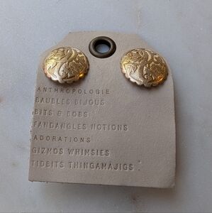 Anthropologie gold oval ball back earrings with intricate vine design. Perfect for any occasion.