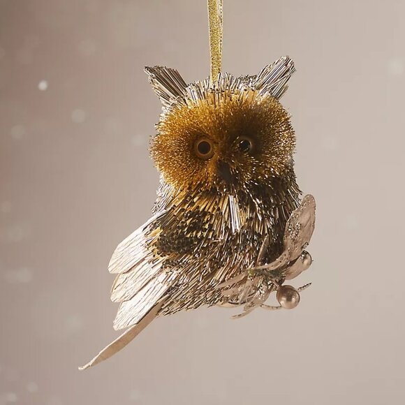 Anthropologie Gold Owl Ornament NEW Metallic Bird Christmas Holiday Festive