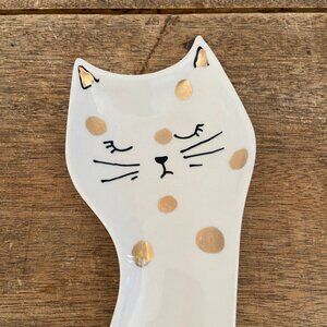 Anthropologie Gold Polka Dot Cat Spoon Rest
