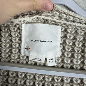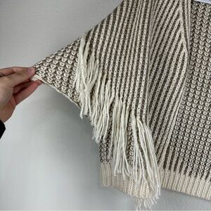 Anthropologie Gold White Striped Knit Fringe Short Sleeve Open Cardigan One Size