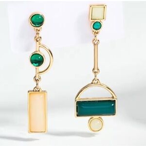 Anthropologie Gold and Green Asymmetrical Geometric Earrings