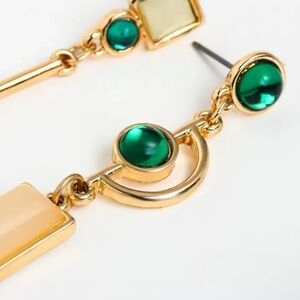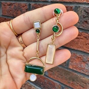 Anthropologie Gold and Green Asymmetrical Geometric Earrings