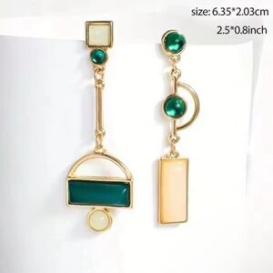 Anthropologie Gold and Green Asymmetrical Geometric Earrings