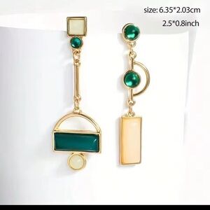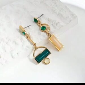 Anthropologie Gold and Green Asymmetrical Geometric Earrings