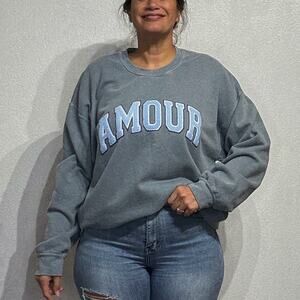 Anthropologie Gray Amour Oversized Crewneck Sweatshirt Sz M