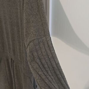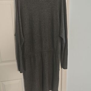 Stylish gray knit dress with long sleeves. Perfect for any occasion.