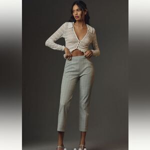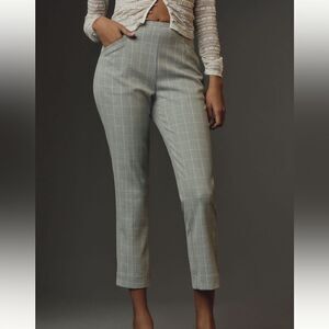 Anthropologie Gray Plaid Printed Dress work pants ankle trousers size 2 Tall 2T