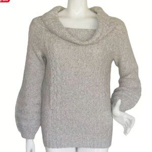 Anthropologie Gray Sweater, Wool and Acrylic Blend, Size Small, Balloon Sleeves