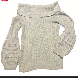 Anthropologie “Sleeping on Snow” label cozy and warm off the shoulder heather gray sweater with bell cuff sleeves and nice stitch detailing. Super warm and in wonderful condition. Cottagecore and grandmacore fall sweater winter sweater. Size small.