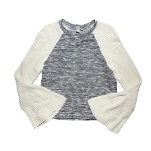 Anthropologie Gray and Ivory Dolan Knit Bell Sleeve Sweater XS