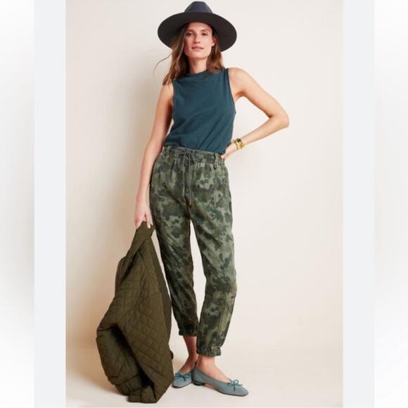 Anthropologie Green Camo Camouflage Leda Utility Joggers Lyocell