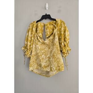 Brand new with tags, Anthropologie Green Floral Top XL NWT. Runched atretch center, puffy tie sleeve detail with back cut out detail