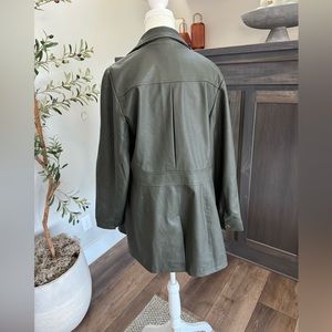 Anthropologie Green Leather Jacket, Removable Fur Color, Size 16W