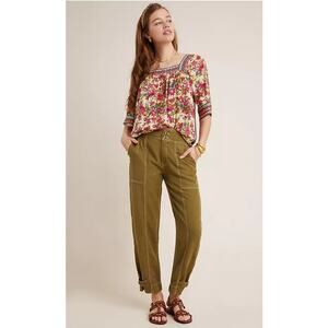 Anthropologie Green Linen Jackson Tapered Utility Pants Size 14