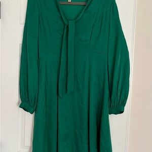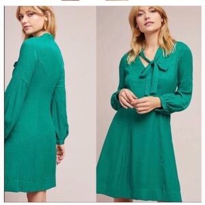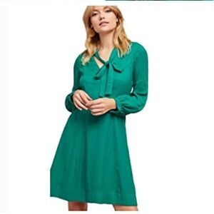 Anthropologie Green Moulinette Soeurs Gina Bow Tie Green Long Sleeve Dress Sz 6