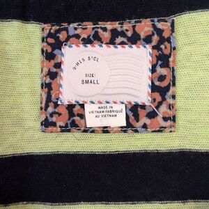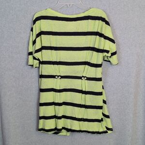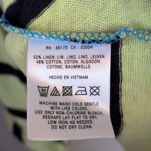 Anthropologie Green Navy Striped Linen Blend Top Womens S