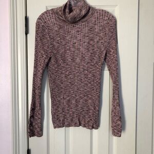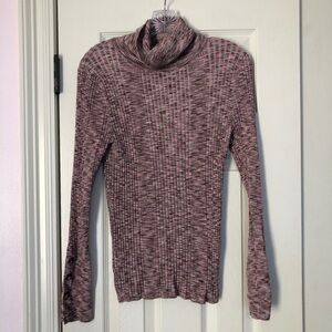 Anthropologie Green & Pink Turtle Neck Button Long Sleeve Top Medium