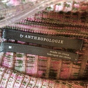 This is an anthropology, pink and green button sleeve turtleneck sweater