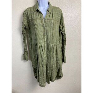 Anthropologie Green Pintuck Shirt Dress Button Up Long Sleeve Women size Small
